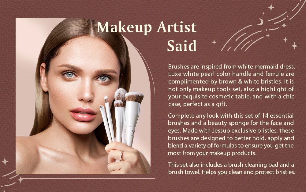 Create any look with this Jessup brush set of 14pcs full make up brushes for face and eyes.