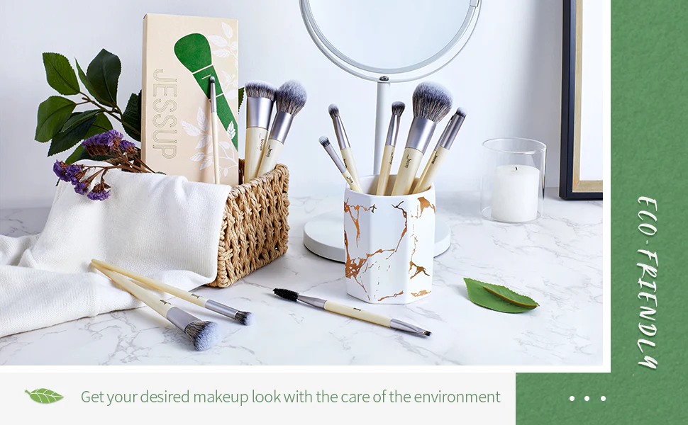 Explore this unique collection of Eco makeup brushes that are made from vegan, cruelty free materials and sustainable wood. What’s important about our vegan makeup brushes is that they are ethical, and symbolize Jessup’s determined attitude towards in protecting world’s environment. Vegan bristles are super soft for a smooth and professional finish! They are also supplied in eco-friendly, zero waste and plastic free packaging.