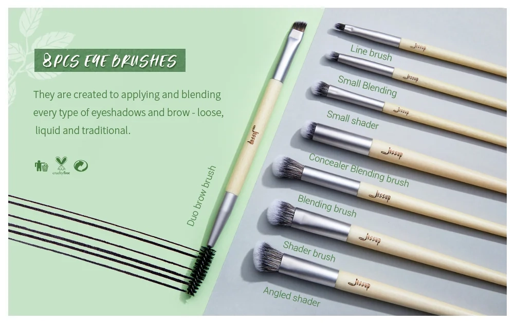 Explore this unique collection of Eco makeup brushes that are made from vegan, cruelty free materials and sustainable wood. What’s important about our vegan makeup brushes is that they are ethical, and symbolize Jessup’s determined attitude towards in protecting world’s environment. Vegan bristles are super soft for a smooth and professional finish! They are also supplied in eco-friendly, zero waste and plastic free packaging.