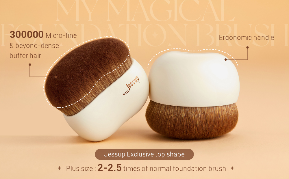 Jessup high density foundation brush has 300 thousands microfiber hairs, with 57mm wide supper-large domed shape bristle for even coverage, takes only seconds to achieve a flawless makeup finish.